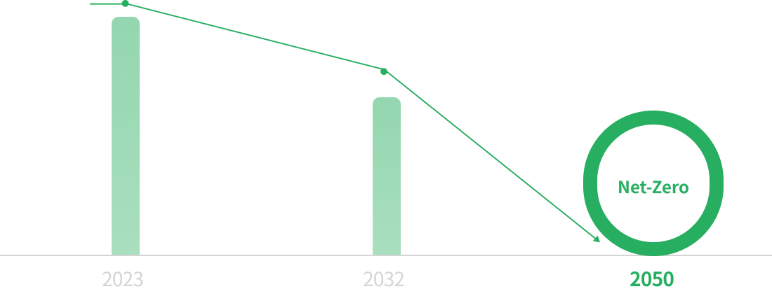 유한화학은 전사적으로 기후변화 대응 역량을 강화하고, 전 사업 부문에서 온실가스 감축을 실현하기 위해 ‘2050 넷제로(Net-Zero)’ 달성 목표를 선언하였습니다. 이에 기반하여 구체적인 감축 계획을 수립하고, SBTi(Science Based Targets initiative, 과학 기반 목표 이니셔티브)의 기준에 따른 검증 절차를 진행하였으며, 2025년 5월에 최종 승인되었습니다.
